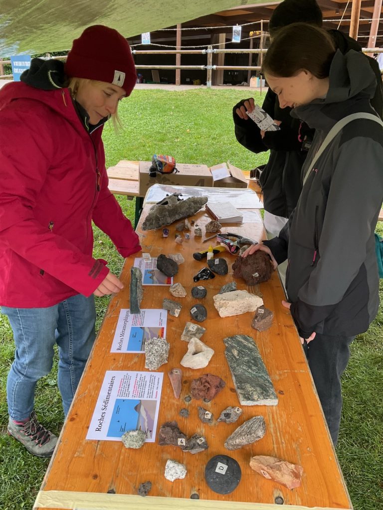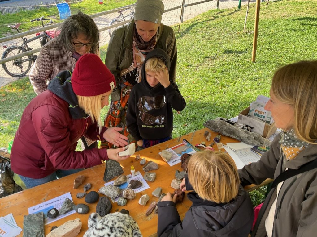 Pour l’édition 2025 du Festival Salamandre sur le thème Métamorphoses, la section vaudoise de l’ASAM expose des cailloux ! Glanés lors de randonnées en Suisse ou dans le monde, ceux-ci racontent la longue histoire des montagnes et le cycle de transformation des roches : magmatiques, sédimentaires, métamorphiques… Que ce soit à l’atelier de dessin au fusain de saule, en déplaçant des sédiments le long d’un petit parcours ou en parcourant la ligne du temps géologique, les enfants cherchent la réponse à l’énigme : «Savais-tu que le _ _ _ _ _ _ _ peut se métamorphoser en diamant ?». Et vous, connaissez-vous la réponse ?